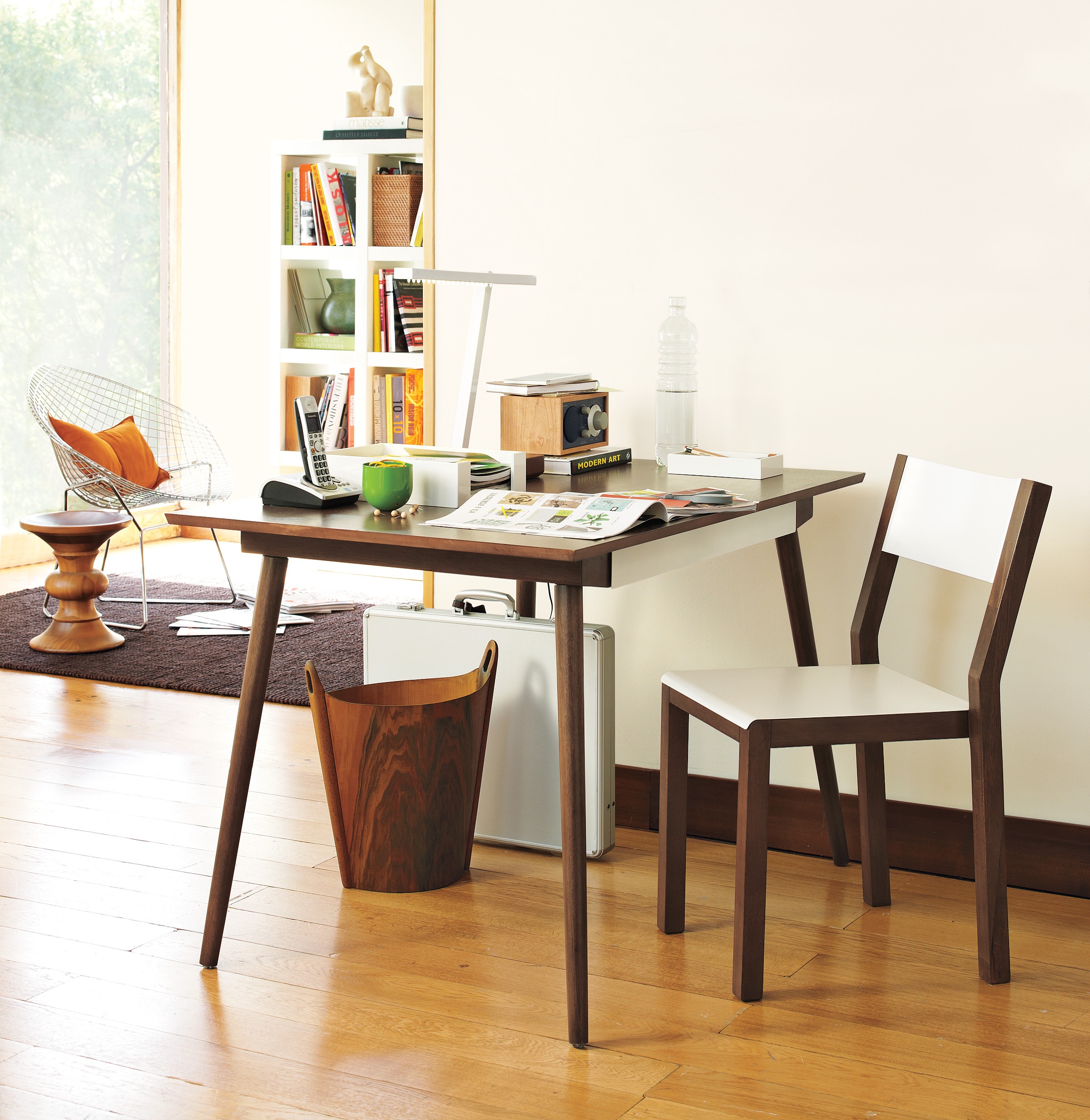 The collaboration between west elm and Pratt Institute, both Brooklyn-based organizations, began as a friendly competition between two groups of Pratt industrial design students (see list below). They were challenged to create a line of office furniture for west elm that embodied the brand’s mandate to “live a little greener every day.” The initial design brief required the Pratt designers to develop a desk, chair, and lamp using sustainably grown, harvested, and/or recycled wood material in order to tell a unique story about the life cycle of materials and the power of conservation and design. Use of other eco-friendly materials and processes including FSC-certified woods, powder-coated steel (a process that is less toxic than traditional plating), non-toxic glues, and water-based stains was also necessary. In addition, the desk lamp had to use energy-efficient Light Emitting Diode (LED) technology. Both teams presented their proposals to the west elm design group and continued to work with them in an apprentice-type relationship to develop the concept, create scale models and eventually produce full-size prototypes of the pieces.