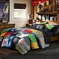 The new Burton home collection includes bedding, lighting, lounge seating, wall décor and accessories for tweens and teens. The collection features patterns and prints inspired from Burton’s popular apparel line. Some highlights include: a quilt which is comprised of 12 t-shirt logos from Burton’s current and past seasons, as well as a duvet cover modeled after a Burton snowboard jacket with authentic details like zippers and pockets. The Burton home collection also includes wall murals featuring images of Burton Team Riders: Danny Davis, Gabi Viteri, Hannah Teter, Jussi Oksanen, and Nicolas Muller.