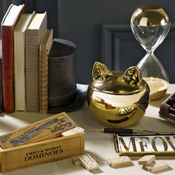 Product highlights include the Ticking Stripe Chaise, a nod to the Denim Chaise from the first collection. The Parisian Headboard is casual yet elegant, unexpectedly pairing denim with an ornately detailed wood frame. Gold is an important theme in the collection, reflected in bedding like the Scattered Star Sheeting and Liquid Gold Star Pillow as well as decorative accessories like the Gold Cat Canister and Bunny Ears Hand. The Emily & Meritt for PBteen collection ranges from $19 to $999 and can be found today at PBteen.com/Emily&Meritt.