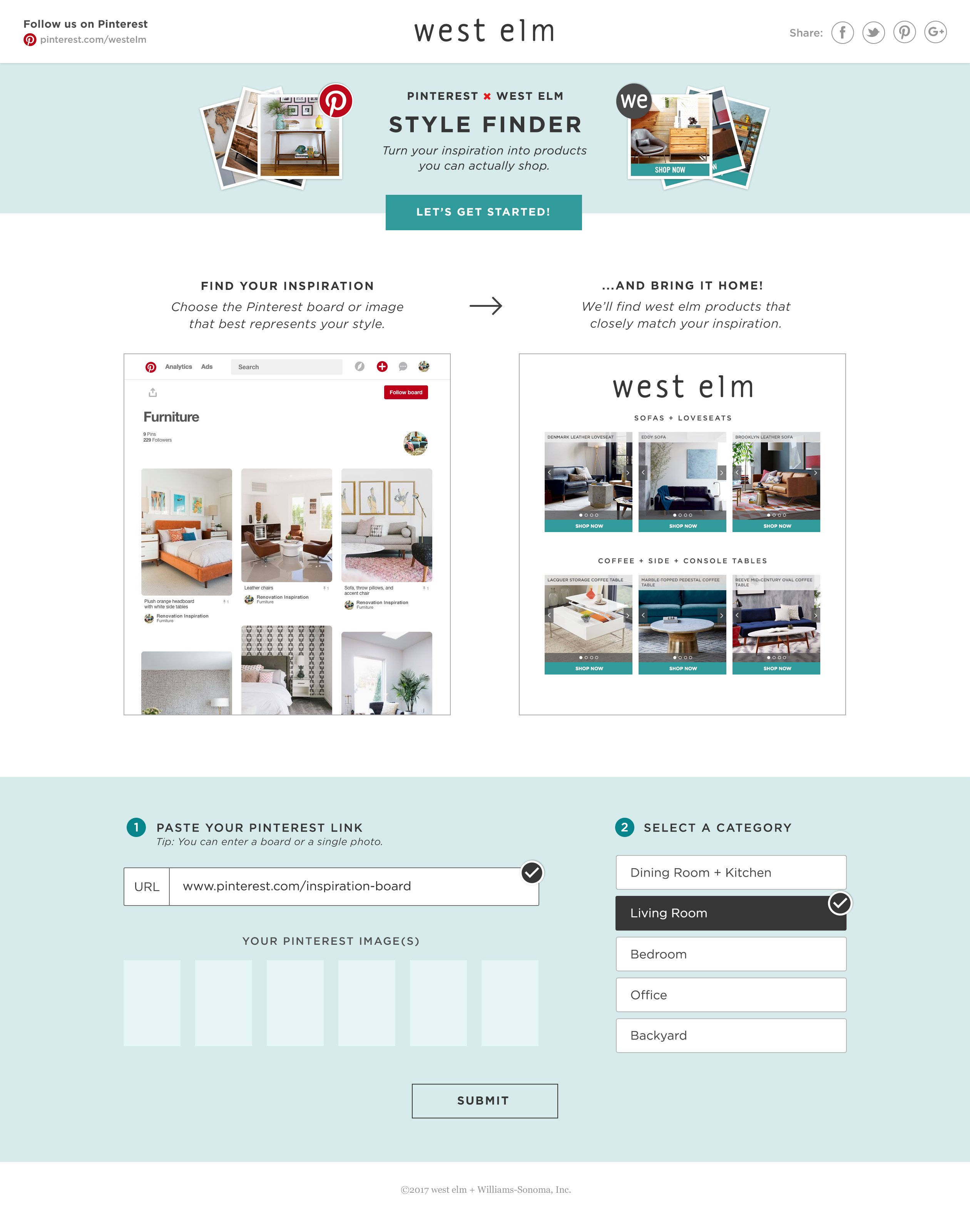 To get started, visit the West Elm Pinterest Style Finder page https://pinterest-style-finder.westelm.com/