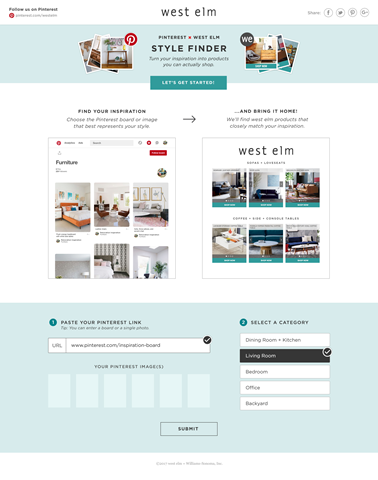 The West Elm Pinterest Style Finder is unique to West Elm, and is