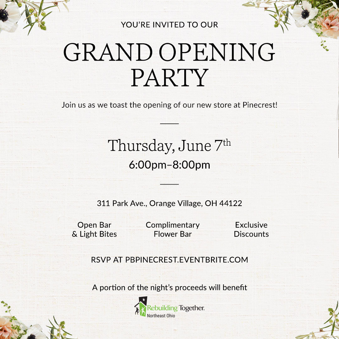 are encouraged to follow @potterybarn_pinecrest on Instagram or visit www.potterybarn.com