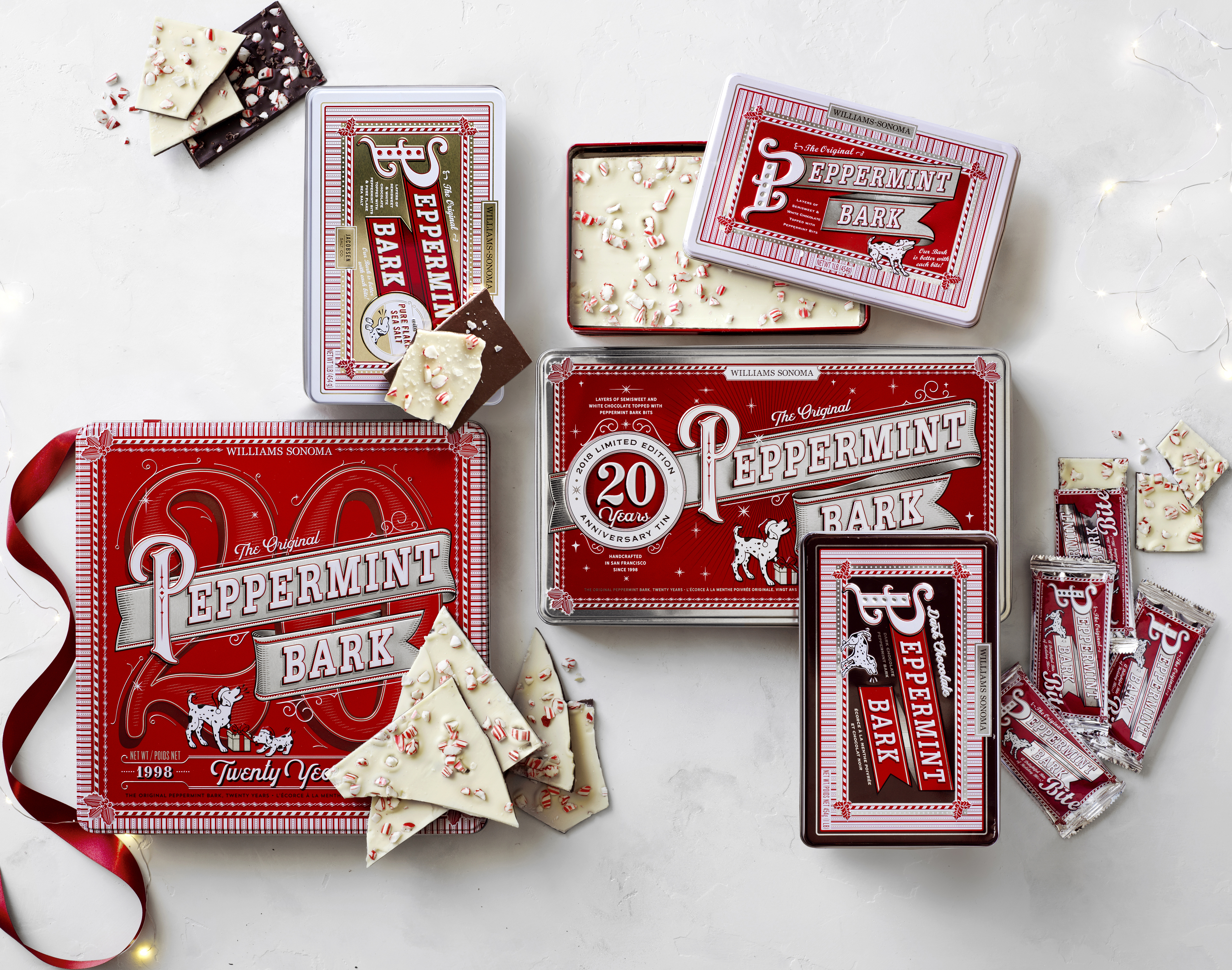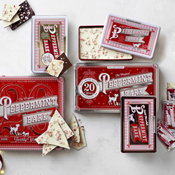 signature Peppermint Bark tins. Available both in stores and online at www.williamssonoma.com,