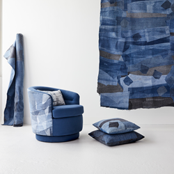 The West Elm + EILEEN FISHER collection is uniquely crafted using a process that begins by deconstructing previously owned denim garments donated by customers as part of EILEEN FISHER’s Renew program. The upcycled fabric is meticulously washed, repaired and hand-layered into intricate and thoughtfully designed patterns, making each piece in the collection one-of-a-kind.
