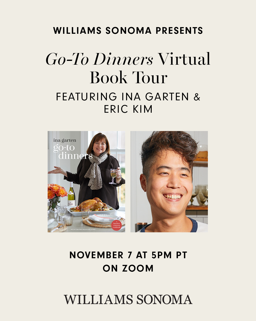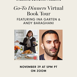 Tickets for the Ina Garten & Friends virtual book tour can be purchased via: http://williams-sonoma.com/inagartenevents