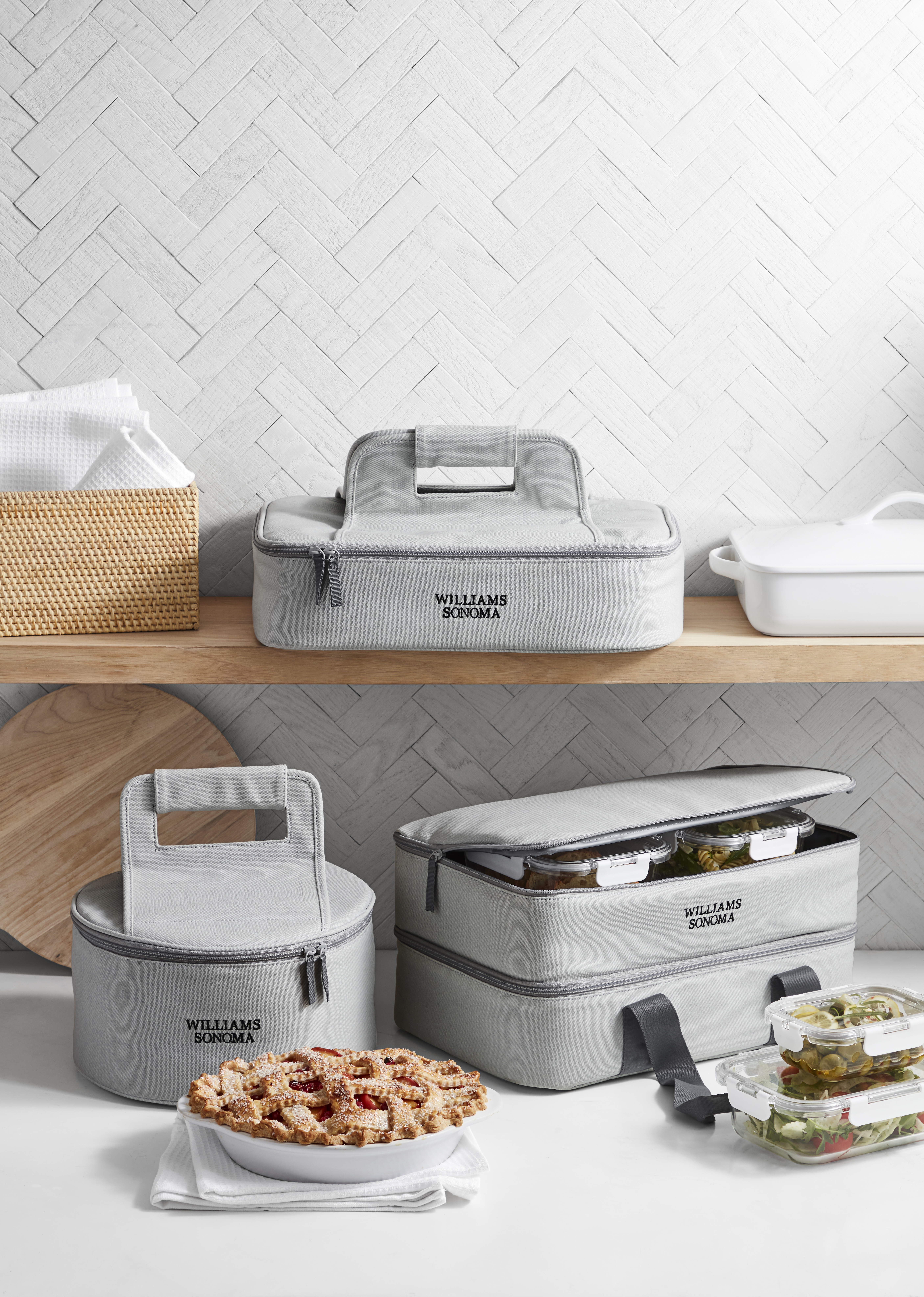 The complete Hold Everything collection is now available at Williams Sonoma stores and on the Williams Sonoma website.
