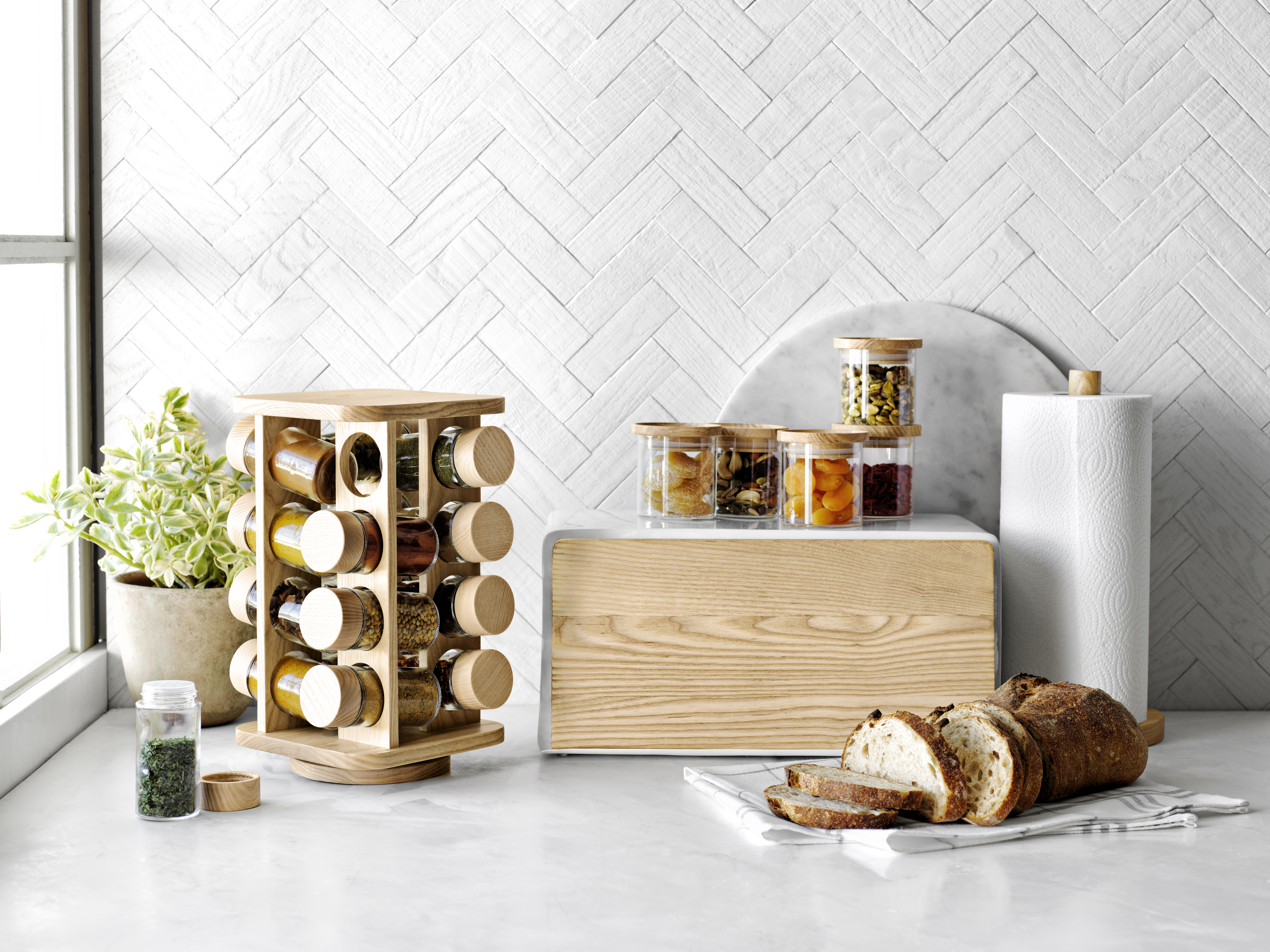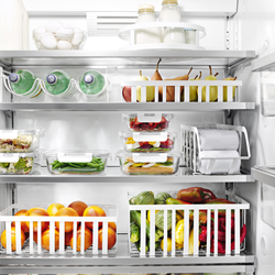 The new Hold Everything collection includes sleek functional storage for countertops, shelves, refrigerators and pantry. Designed for function and style, the new in-drawer organizers, stacking shelf-risers, and bins provide custom storage solutions for cabinets and drawers, while products designed for the refrigerator allow customers to take advantage of stackable storage that keeps food easily visible and within reach. Pantry storage products recently added to the Hold Everything collection, keep food fresh and organized with stacking glass containers and airtight ashwood lids.