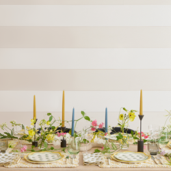 Founded in 2014 by former college roommates and best friends Phoebe Vickers and Purna Khatau, RHODE is a lifestyle brand that designs for good times, big adventures and a vibrant life. Adored by the fashion-set, the brand’s aesthetic lends itself beautifully to the home space. This collaboration includes decorative accessories, tabletop and colorful textiles with complementary motifs in a variety of blues, greens, pinks and yellows.
