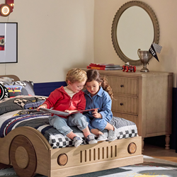 For Pottery Barn Kids, playful bedding, rugs, decor and accessories transform bedrooms and playrooms into imaginative, race-ready winning spaces. The Pottery Barn Teen collection features statement quilts stitched with racing-inspired details, modern lighting with tire and wheel motifs, and rugs that double as artful homages to the track.